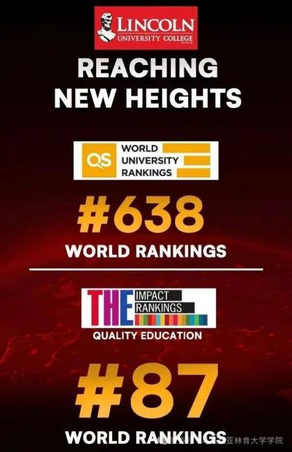 实力铸就口碑,排名见证实力!林肯大学学院的办学水平获得全球权威机构认可,排名逐年攀升,彰显强劲综合实力: