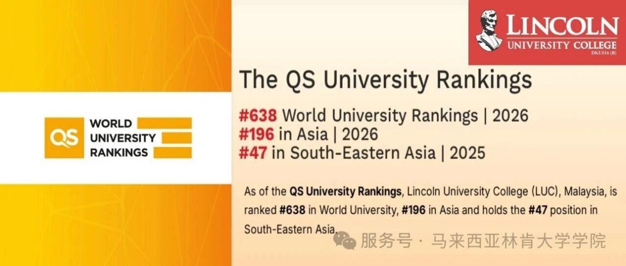 从QS世界排名的稳步攀升,到科研成果的持续突破;从全阶专业的多元覆盖,到国际化的成长平台,林肯大学学院始终坚守“培养有良知、有能力、有担当的全球人才”的初心,助力每一位学子在这里绽放光彩。