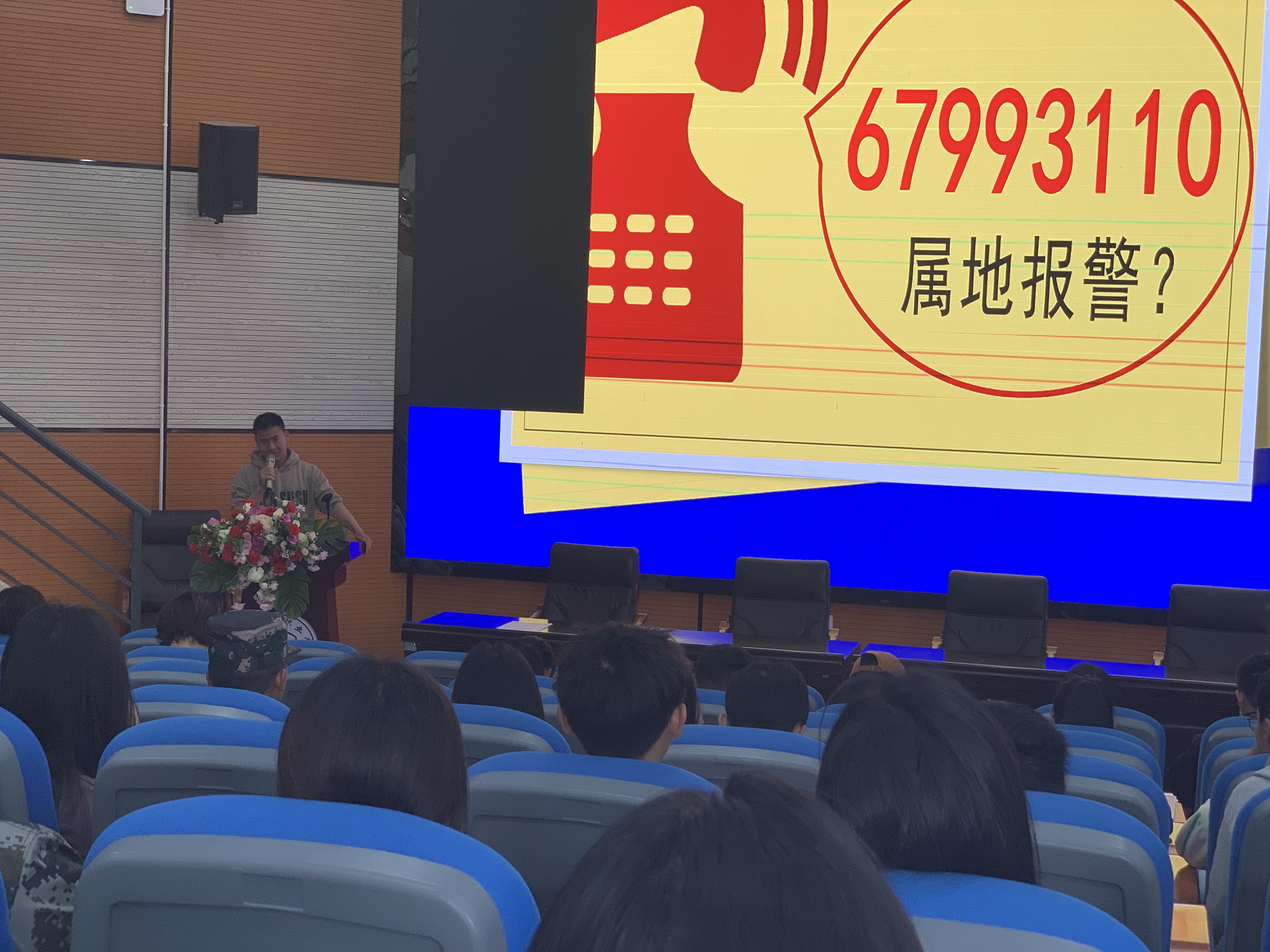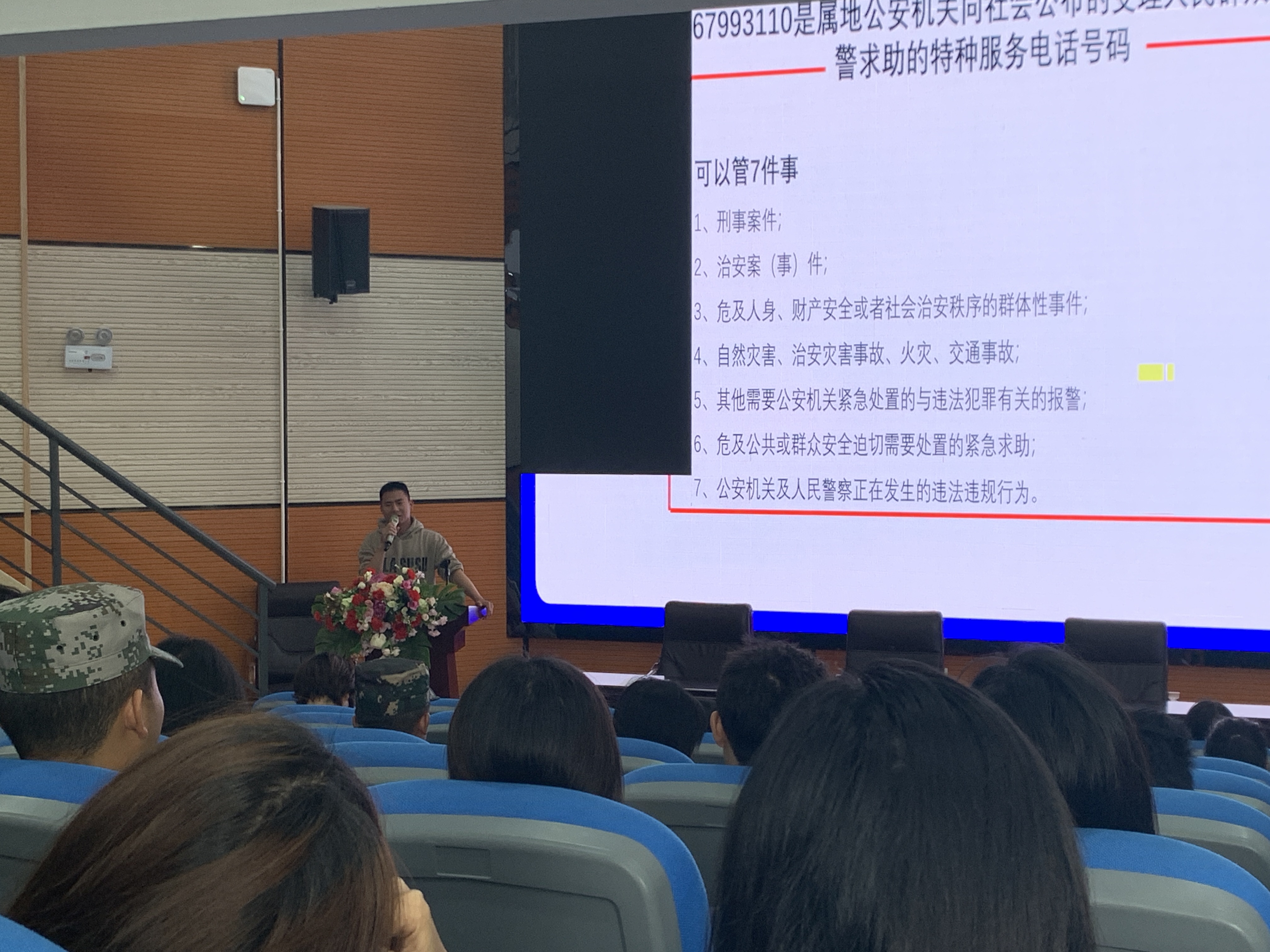 本次讲座围绕“属地报警67993110,怎么打?校园报警67983110,怎么用?”展开。让全体学生更加深入了解报警服务中心、信息查询系统、接警功能、联动功能、校内外联动、服务功能、报假警的处罚等相关知识。通过警情案件事件、日常生活及相关急救常识、事故责任认定等多个方面进行了深入讲解,帮助学生树立正确的维权意识和法律意识,引导学生正确使用校园“110”。