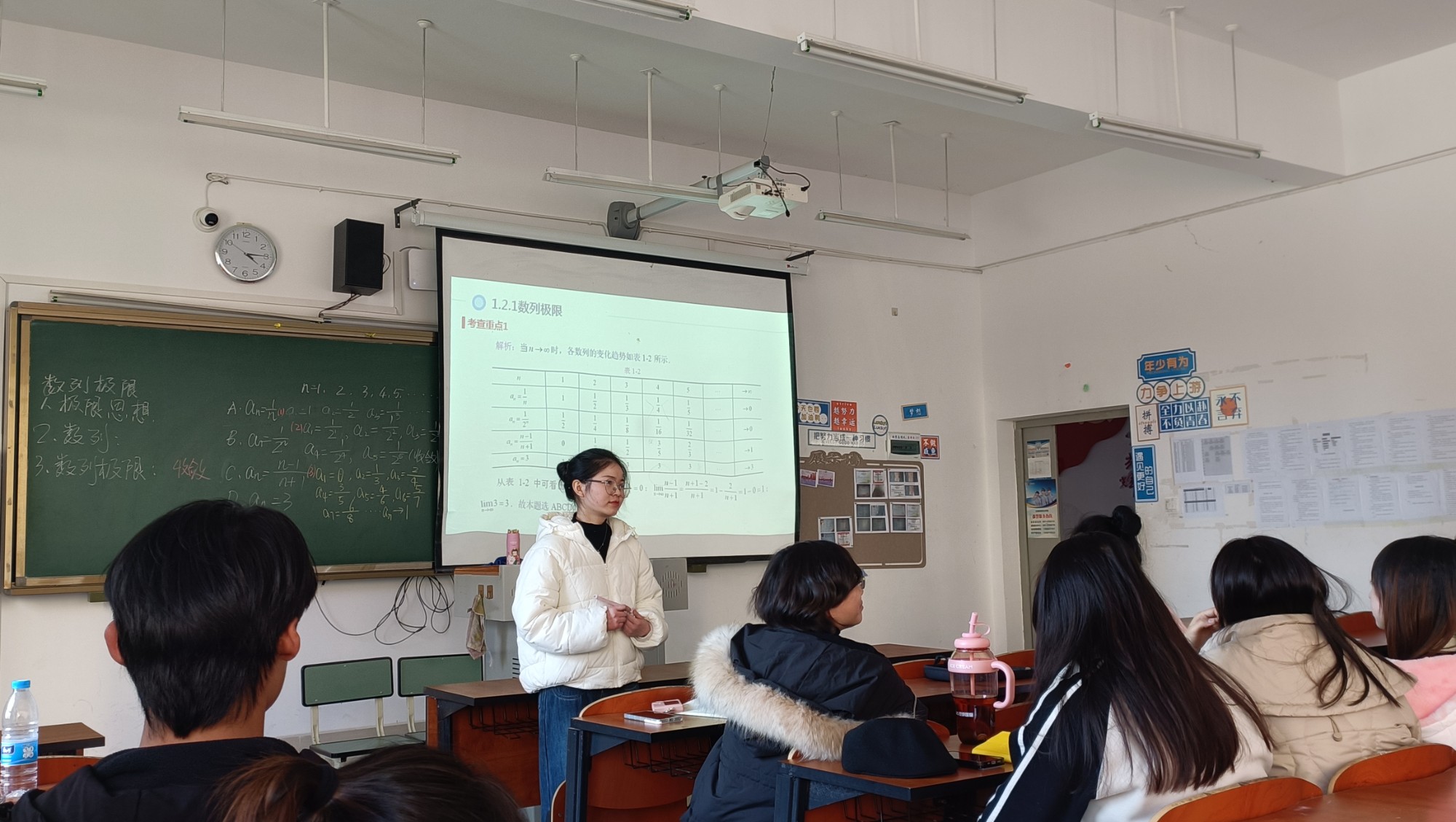 邝龙利老师的《数列极限》课,以古代数学“割圆术”的故事导入,巧妙地将思政元素融入其中,让学生领略到古人的智慧与数学的魅力。为了帮助学生理解抽象的极限概念,邝老师以“包子店肉馅多则无穷大,包子店肉馅少则趋近于零”这一生活实例进行类比,化难为易,让学生们在轻松的氛围中掌握了数列极限的精髓。