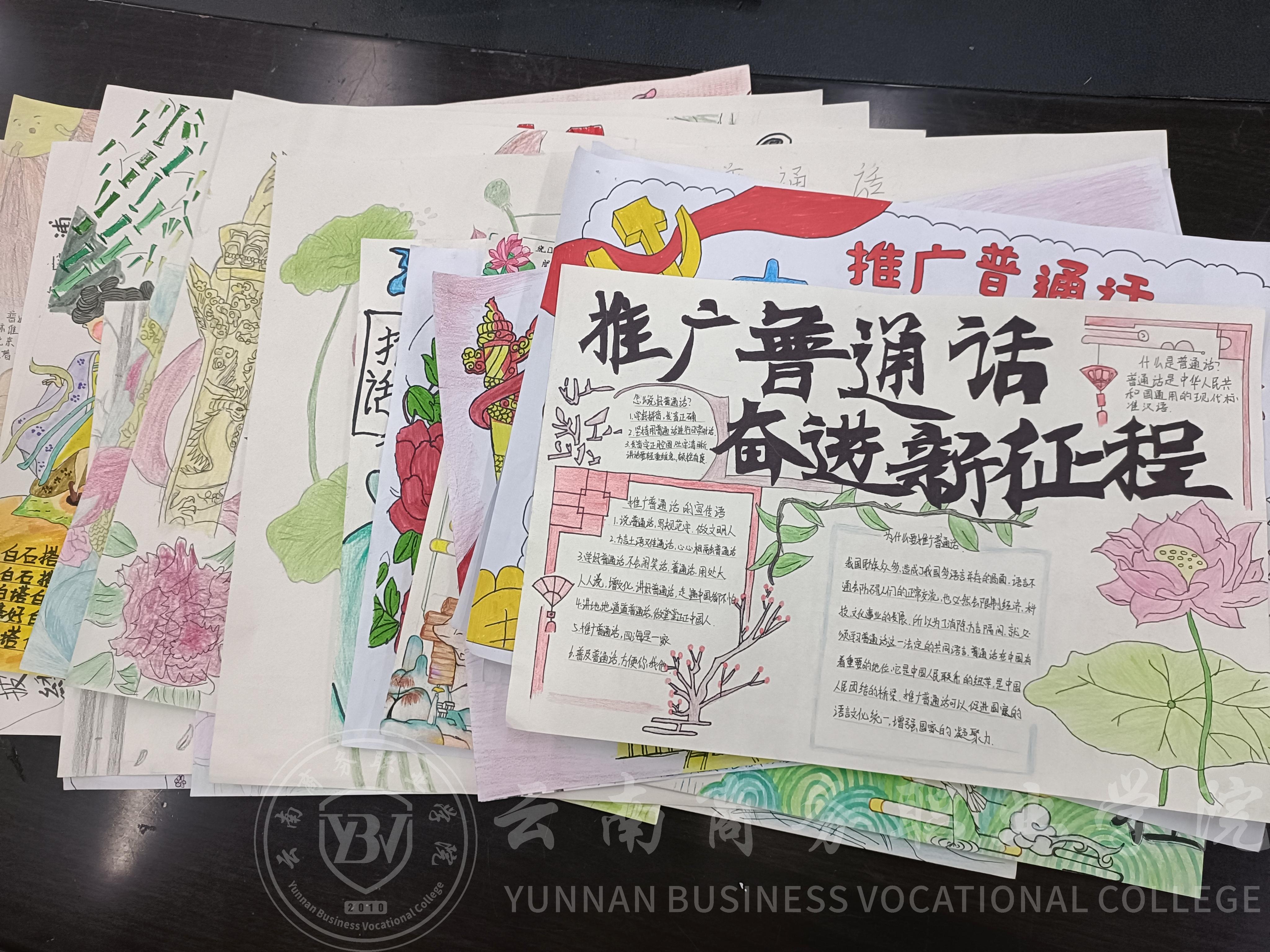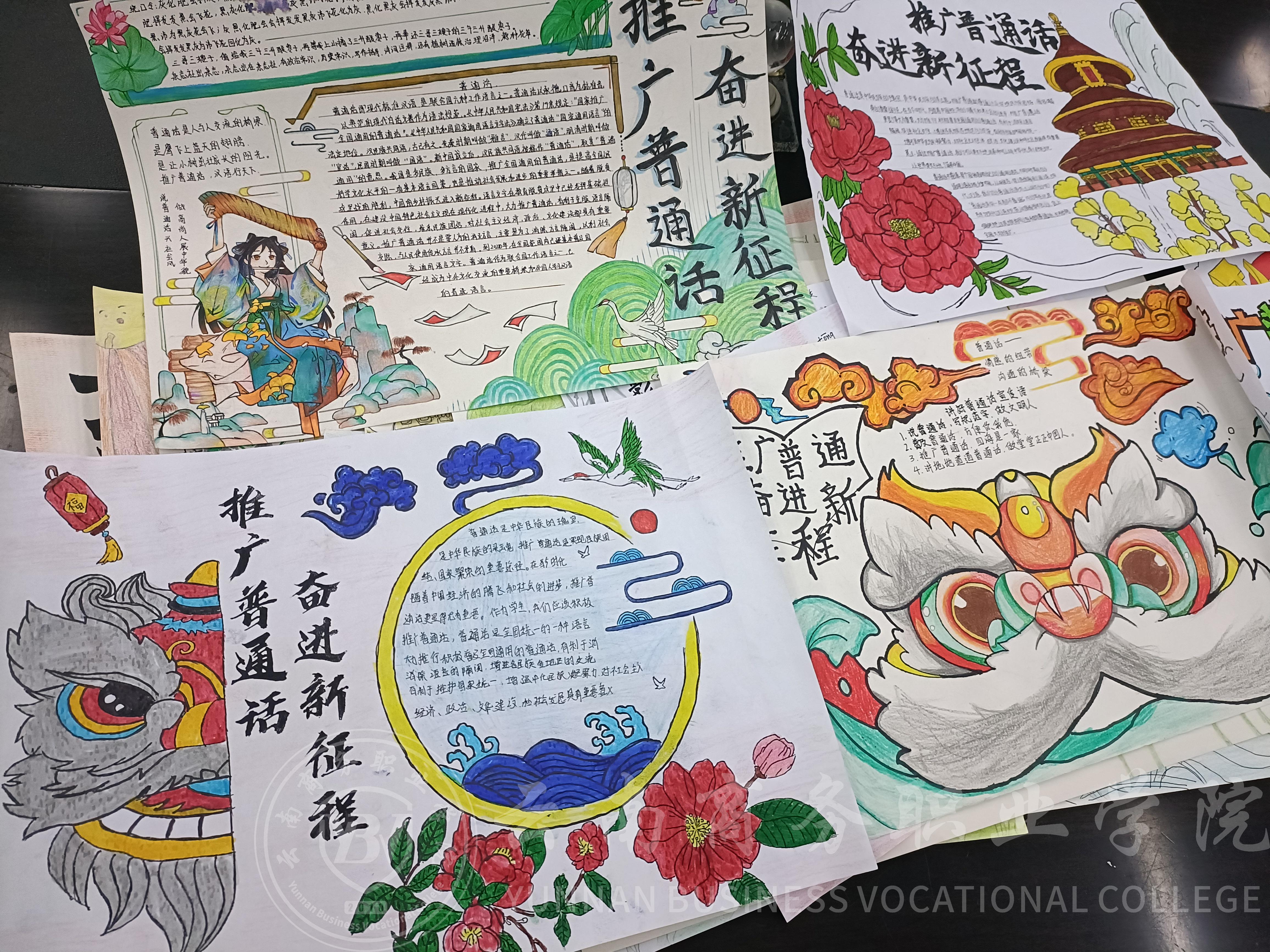 在本届推普周期间,公共基础教学部组织了手抄报征集活动,在文理教研室各位语文老师的积极筹备和宣传下,征集到许多幅作品,为同学们提供一个普通话交流的平台,这次活动不仅提高了学生对普通话的认识和重视程度,还激发了他们对中华优秀传统文化的热爱。