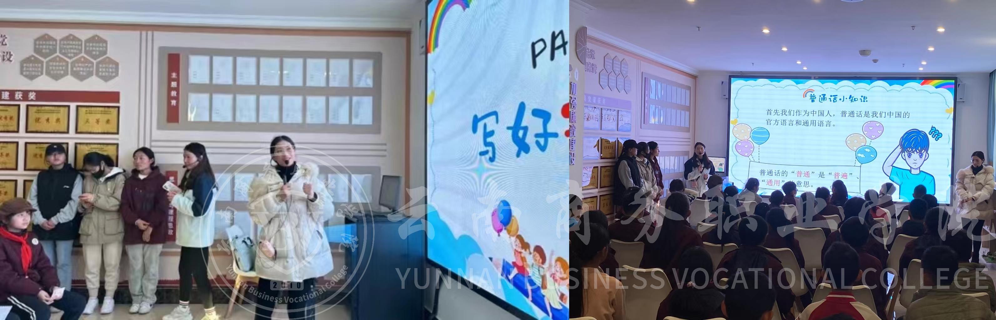 接下来进行“讲好普通话,写好规范字”活动。大家一起来到图书馆党建书屋开始了普通话推广活动。在语文教师的趣味游戏和知识科普的引导下,同学们知道了普通话的重要意义,并下定决心以后要说好普通话。积极推广普通话,为学生种下学习国家通用语言文字的种子,助力其成长成才,为培养适应新时代的未来人才打下坚实基础。