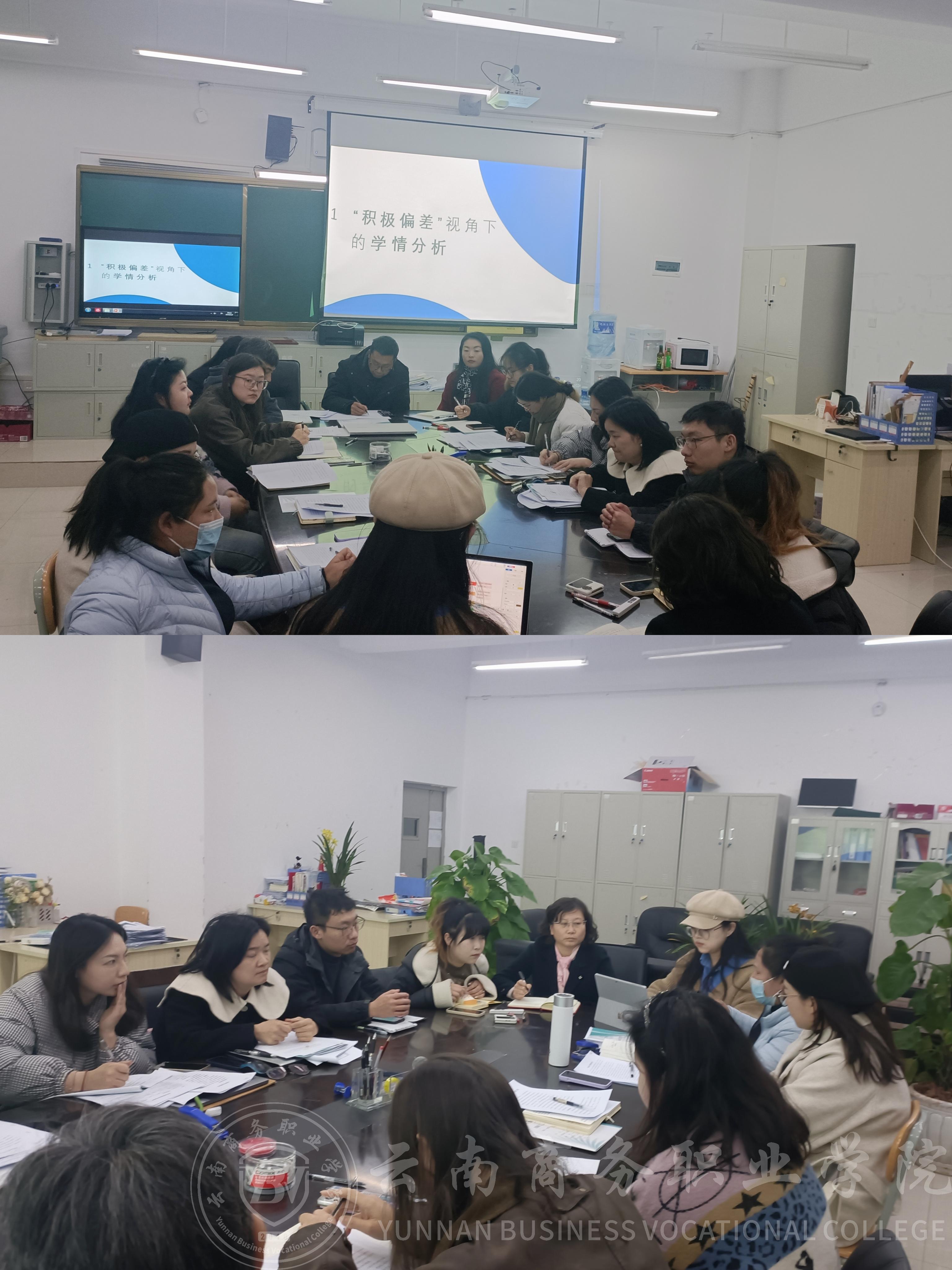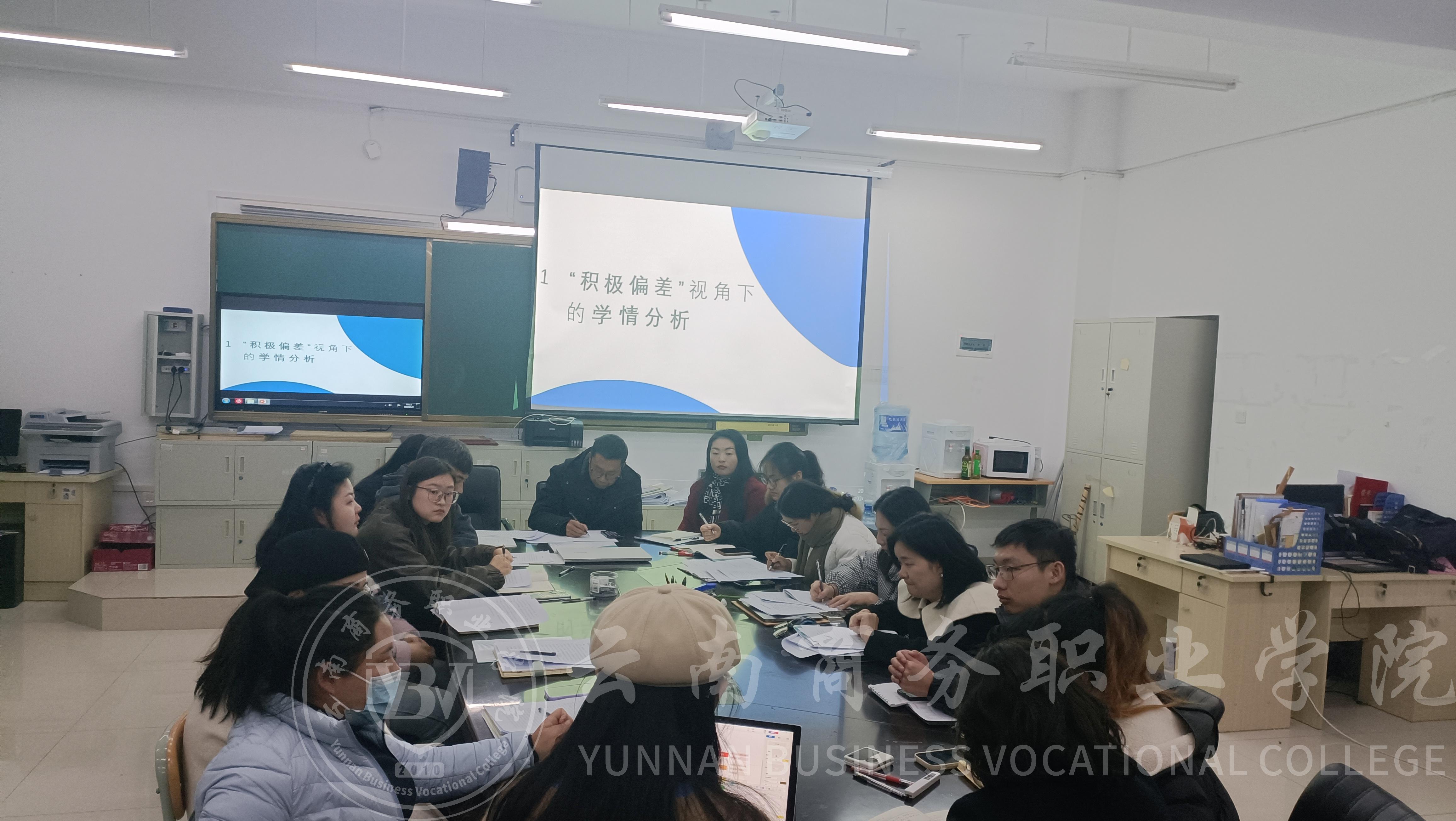 1月9日晚上7:30,公共基础教学部在2-308组织2023年期末集体学习,王琳琳副校长莅临指导。本次学习主要从正确解读教学文件、规范教学技能比赛、教学常规管理几个方面展开学习。王琳琳副校长作了开场讲话,她说:“新时代青年教师要快速成长,必须紧跟国家最新政策,解读相关文件,学会职业赋能,注重个人技能的提升,方能成为好老师。”