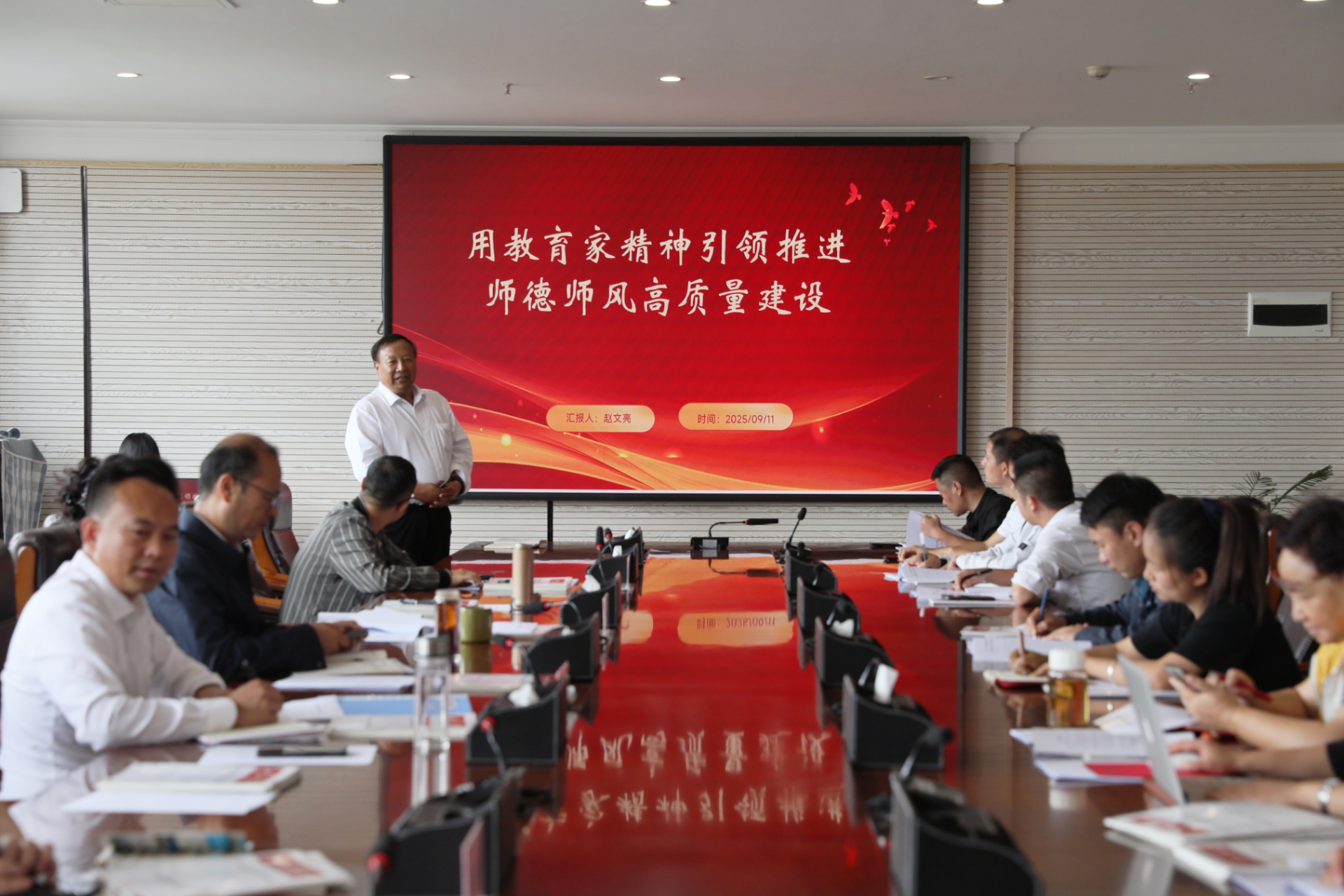 学术委员会主任赵文亮围绕习近平总书记重要回信精神以“用教育家精神引领推进 师德师风高质量建设”为题,从师道尊严树立、师德建设目标、师德标准落地路径以及愿景行动等方面作专题讲授。赵文亮主任结合学校师德先进典型事迹,深入浅出地阐释了师德建设在新时代教育中的重大意义和作用,鼓励在座干部要以弘扬教育家精神为引领,通过提升敏锐的洞察力,切实提升发现问题和解决问题的能力水平,实现办学能力高水平发展;鼓励推动守正创新,坚持以学生为本,探索个性化教育模式,制定差异化学生培养方案,不断提升学生学习主动性;构建教育教学体制机制新生态,激发教师工作积极性与创造性,推进“五金”建设,推动高效的教育管理体制落实落地。