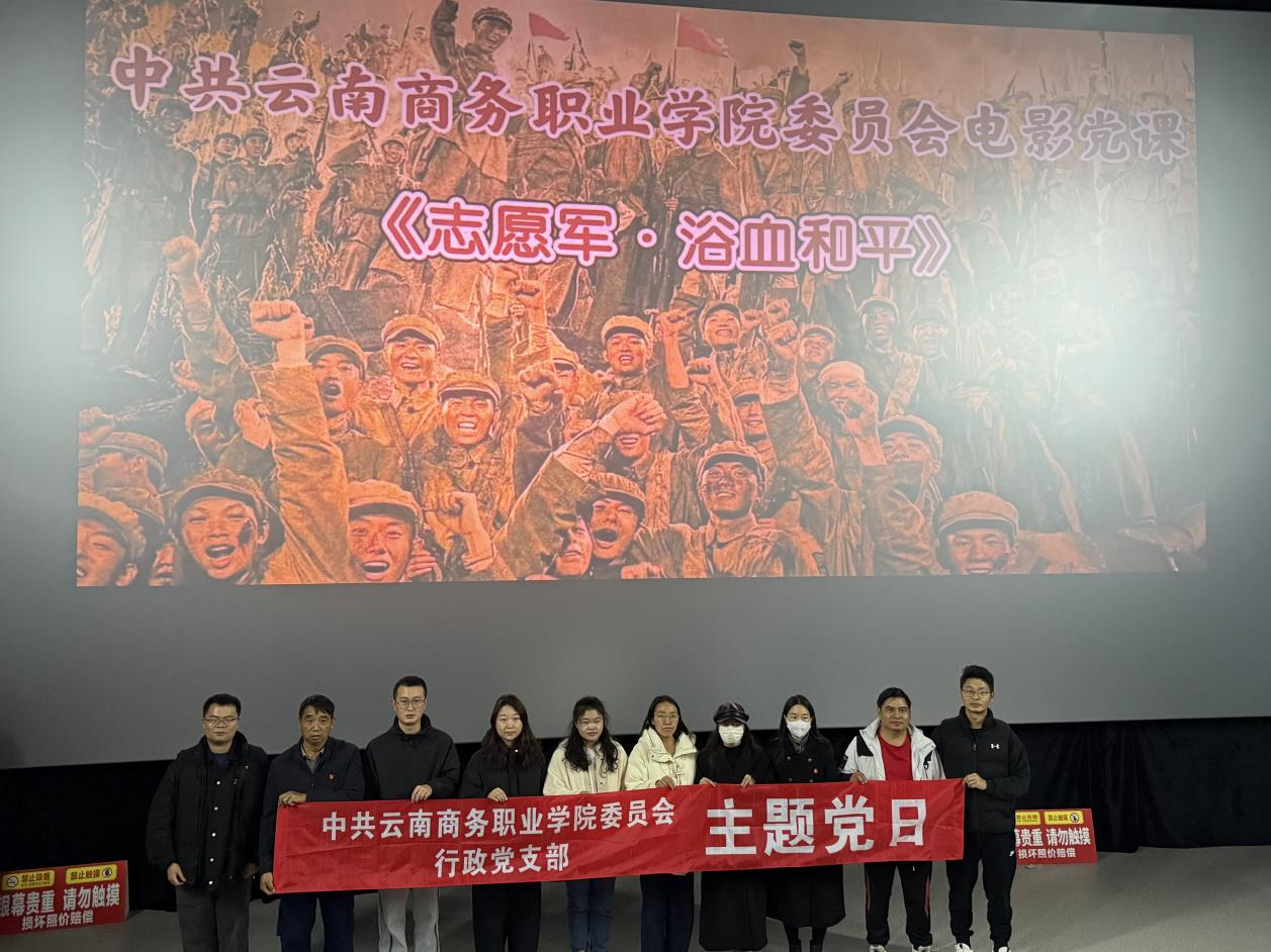 为深入学习贯彻习近平总书记关于中国人民抗日战争暨世界反法西斯战争的重要论述,隆重纪念中国人民志愿军抗美援朝出国作战75周年,积极响应学校相关工作部署,行政党支部于2025年10月23日晚,在里外里千禧剧幕影院精心组织开展了“学思想、强党性、践行动”主题党日活动。行政党支部全体党员及入党积极分子齐聚一堂,通过一堂别开生面的“电影微党课”,共同接受思想洗礼,锤炼坚强党性,激发行动自觉。