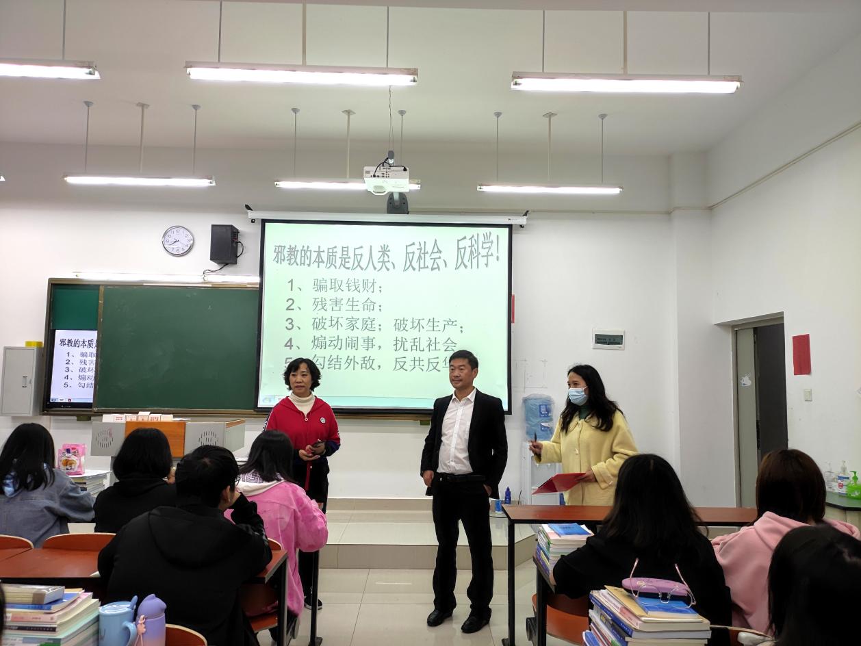 为贯彻落实中央和省委、市委政法委关于加强反邪教宣传教育工作的有关规定,根据嵩明职教新城管理委员会的通知要求,中共金年金字招牌诚信至上委员会医学学院党支部于2021年10月31日深入开展反对邪教、崇尚科学宣传活动。