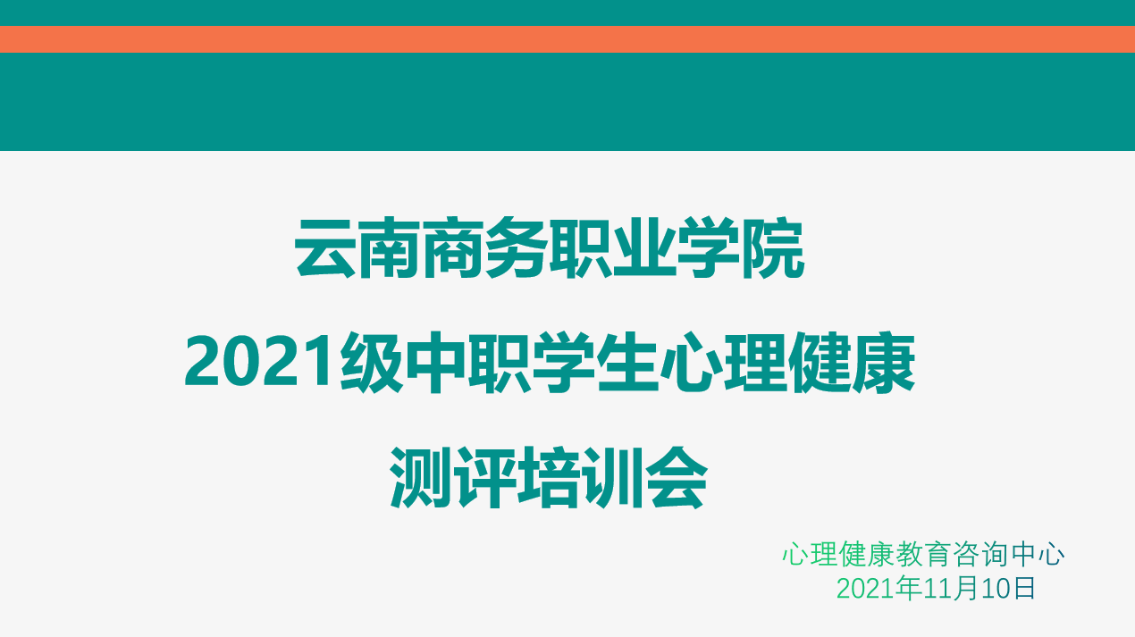 测评前心理咨询中心准备了关于介绍测评流程的PPT,以及安排好各班测评时间。在本次测评中心理协会成员、班主任也是重要的参与者,测评的第一项工作就是对2021级中职班心理委员、心理协会部分成员进行培训,通过PPT演示测评流程,以及讲解在测评中可能出现的问题以及解决办法。