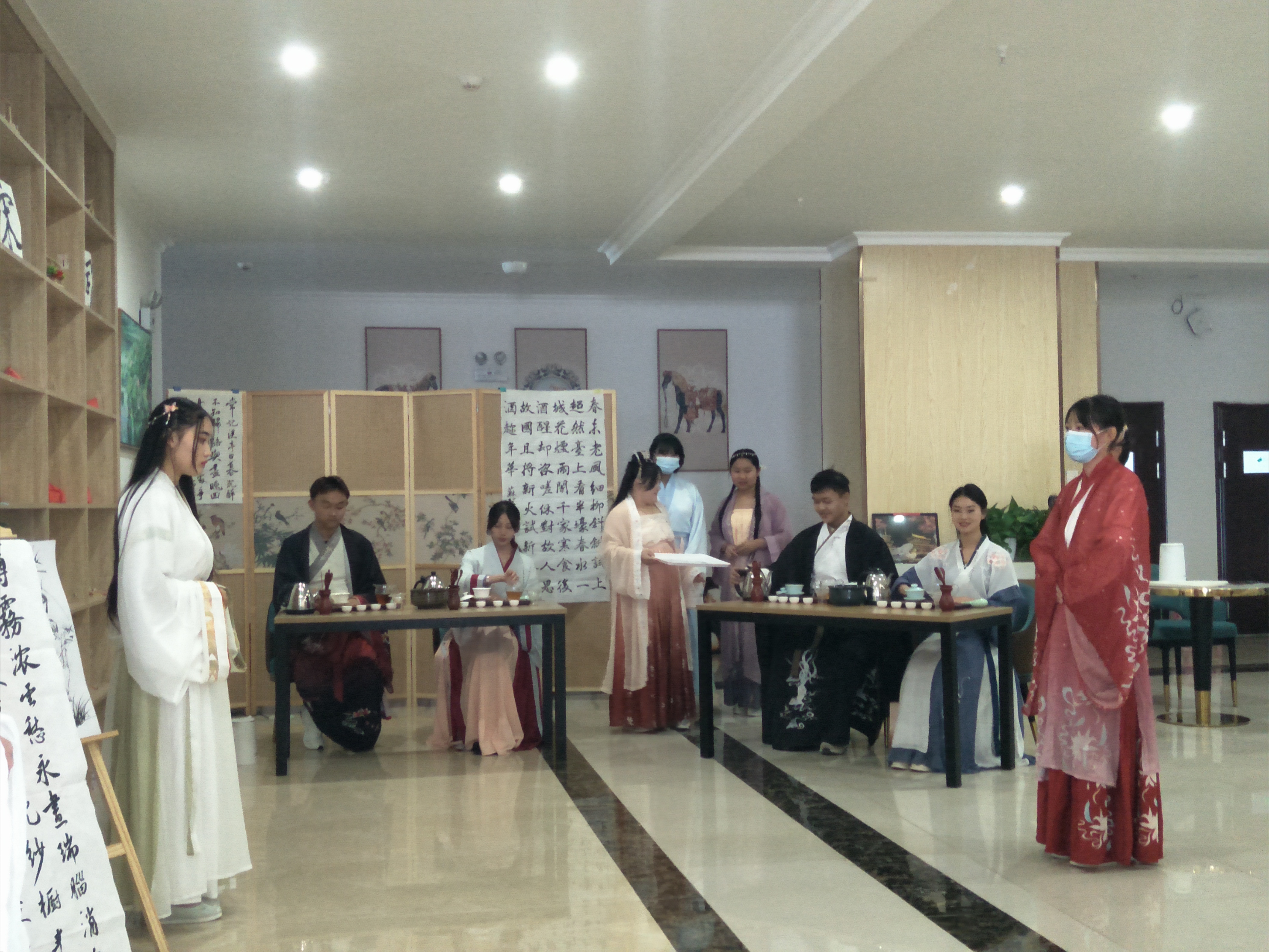 首先由茶艺社向到场师生展示了宋代茶艺,引导大家赏茶、泡茶、识茶。接着在音乐和茶香里,由国风社的成员手捧宋词向师生介绍、分享宋词文化并为沉浸在宋词世界里的师生送去一杯清茶。最后组织同学集中到宋词主题墙旁边诵读名家作品。婉约派代表李清照和豪放派代表辛弃疾的词以现代的方式演绎出来,给大家一个全新的体验,在朗朗读书声中把活动推向高潮。