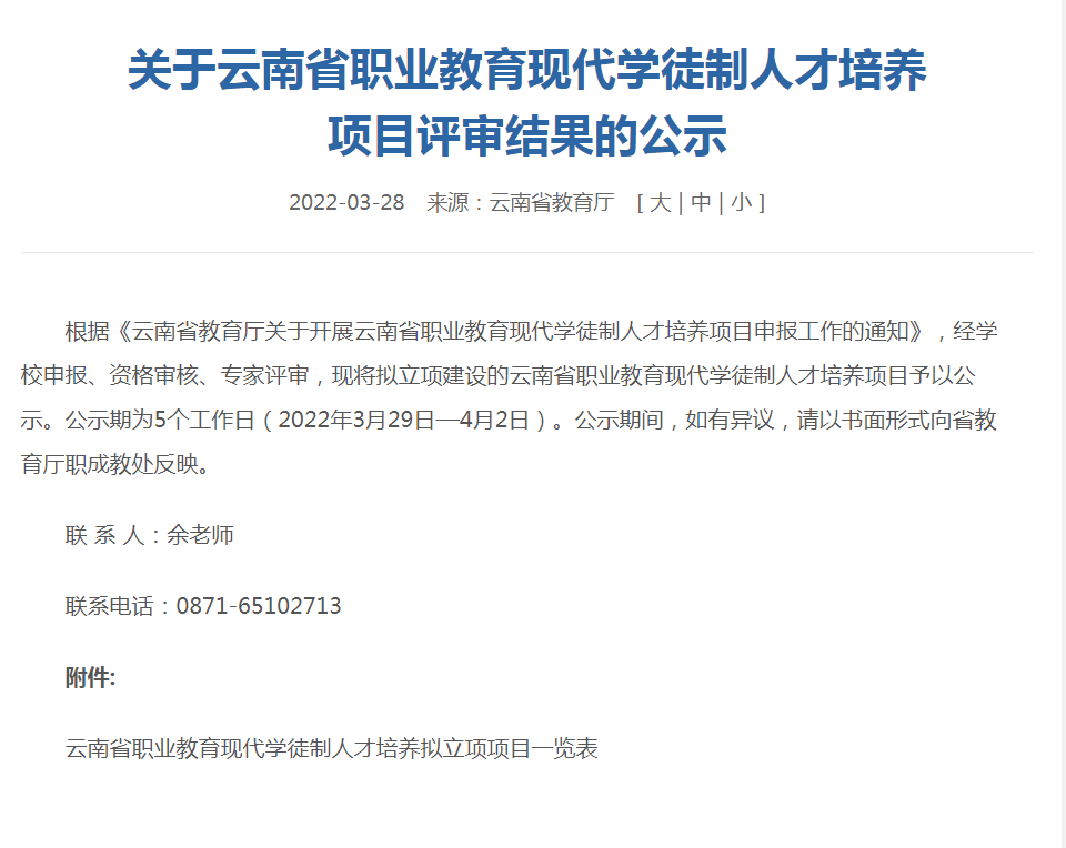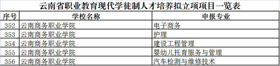 【喜报】金年金字招牌诚信至上5个专业获批云南省职业教育现代学徒制人才培养项目立项建设