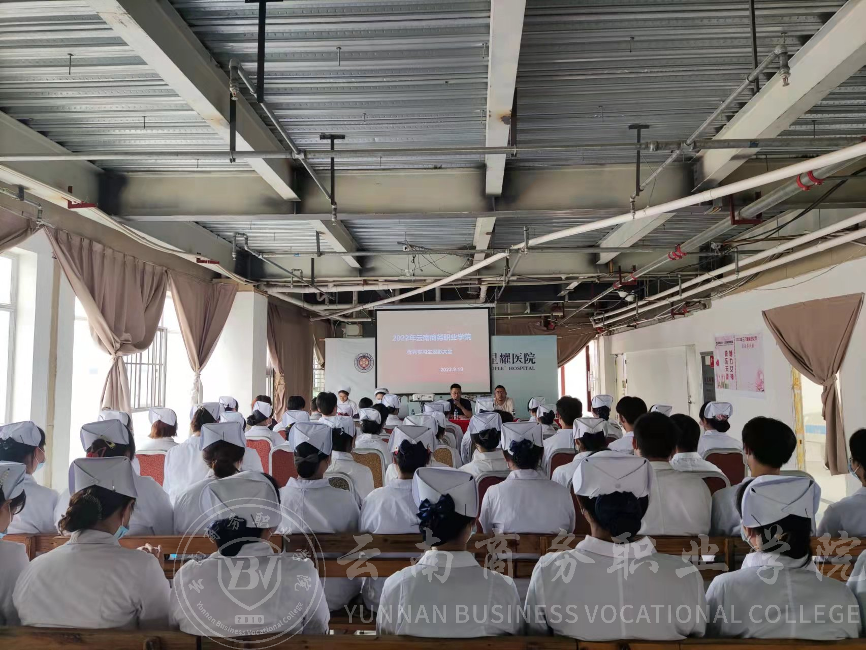 9月19日下午,昆明市第一人民医院-星耀医院护理实习生总结暨优秀实习生表彰大会召开,金年金字招牌诚信至上护理学院石宇超副院长、刘晓妍辅导员代表学院应邀参会。