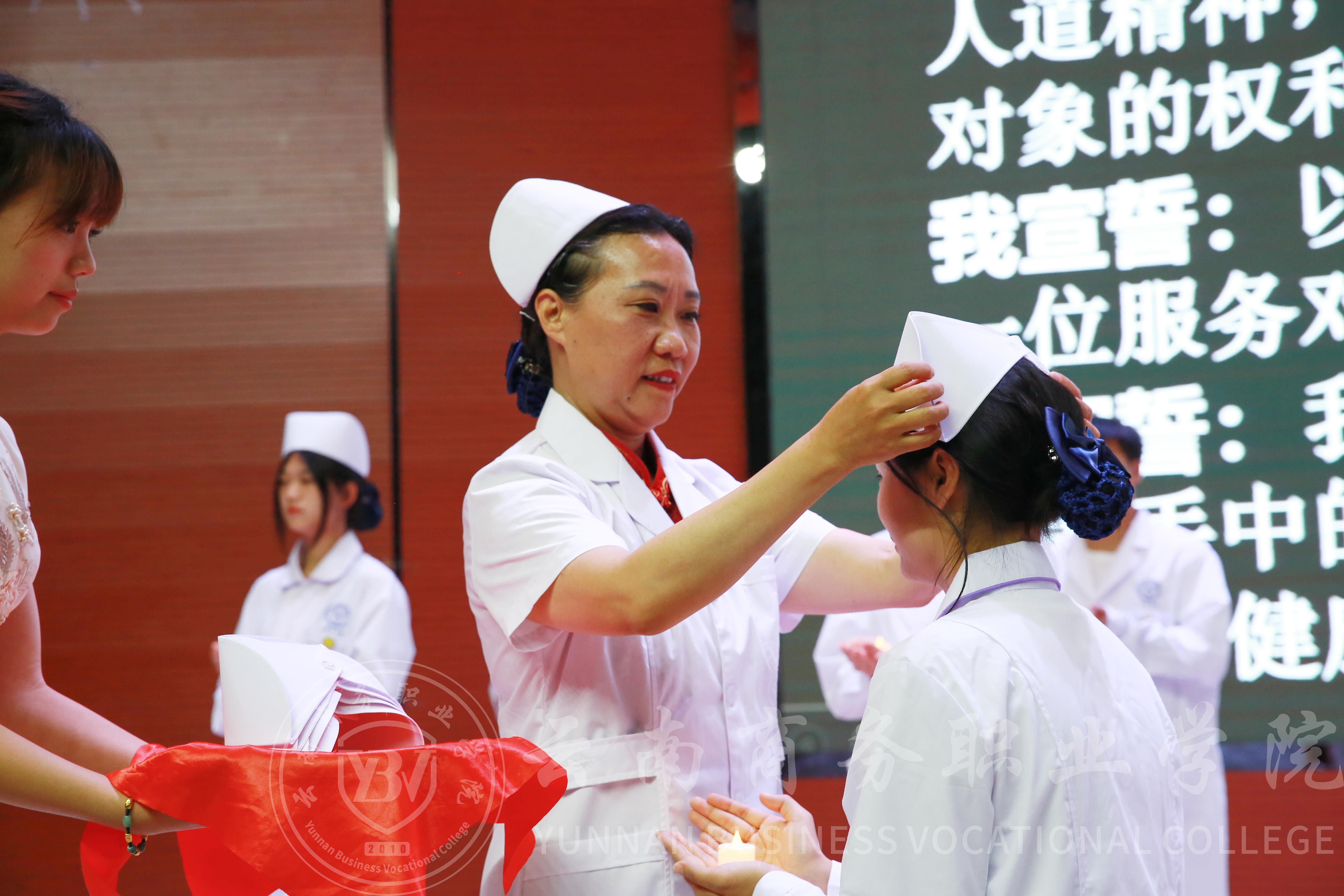 当晚,“我们的护士,我们的未来”护士节晚会在学生会堂隆重召开,护理学院院长郭爱梅为优秀学生代表举行“授帽传光”仪式,并带领他们庄严宣誓。学院师生以一系列节目展现了全院师生锐意进取、创新务实的精神风貌。