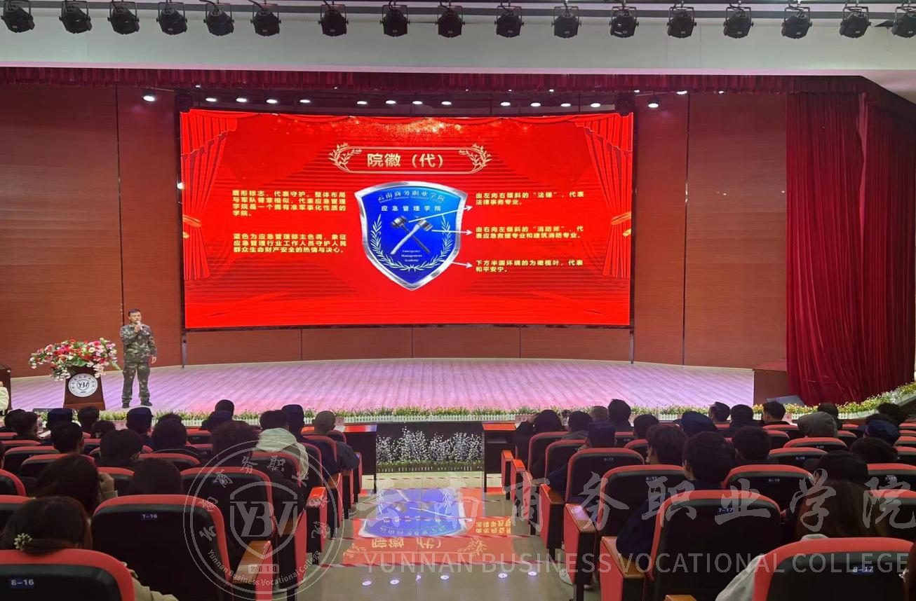 随着激昂的开场音乐,典礼正式拉开序幕。首先,主持人介绍了本次院徽征集活动征集结果,并宣布了院徽设计获奖名单。应急管理学院院长柯科同志对院徽的审议确定过程进行讲解,公布学院院徽及院训,回顾了过去一年学院在教育教学、科研创新和社会服务等方面取得的成绩,并向受表彰的师生表示热烈的祝贺。