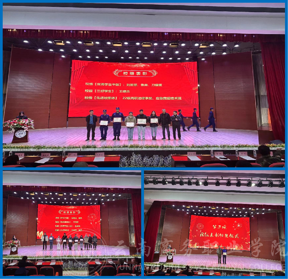 紧接着,激动人心的表彰环节开始。经过严格的考核和评选,本次典礼共表彰了院级进步之星2名、优秀宿舍长1名、优秀学生干部1名、三好学生2名,校级进步之星3名、优秀宿舍长1名、文明宿舍1间、优秀学生干部3名、三好学生1名、先进班集体1个。这些优秀的学子们在学习实训、社会实践、志愿服务等方面表现出色,成为了全院学生学习的楷模和榜样。