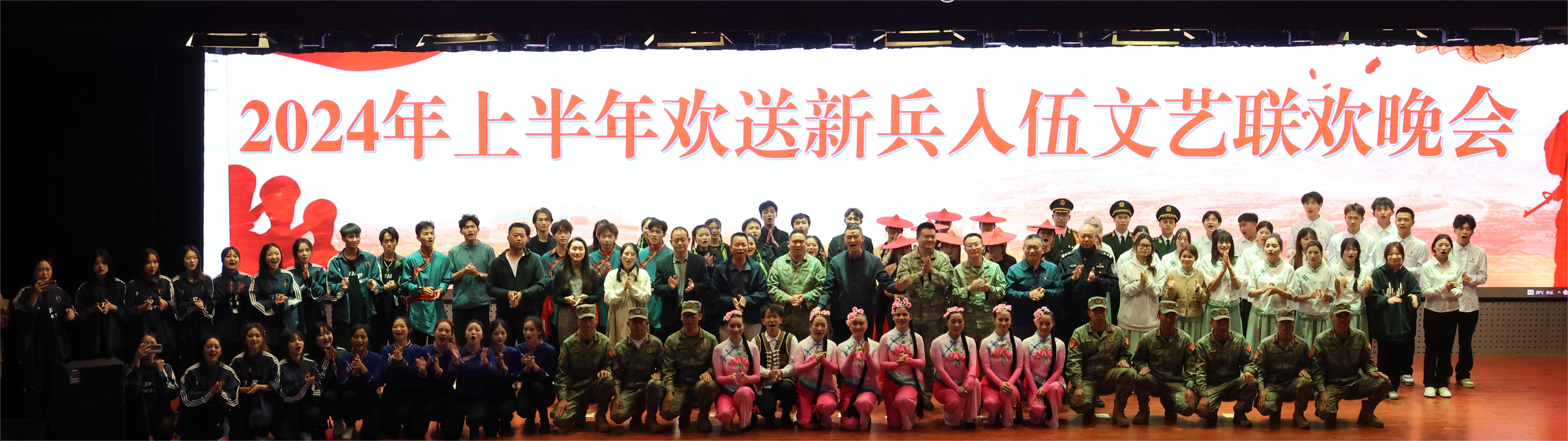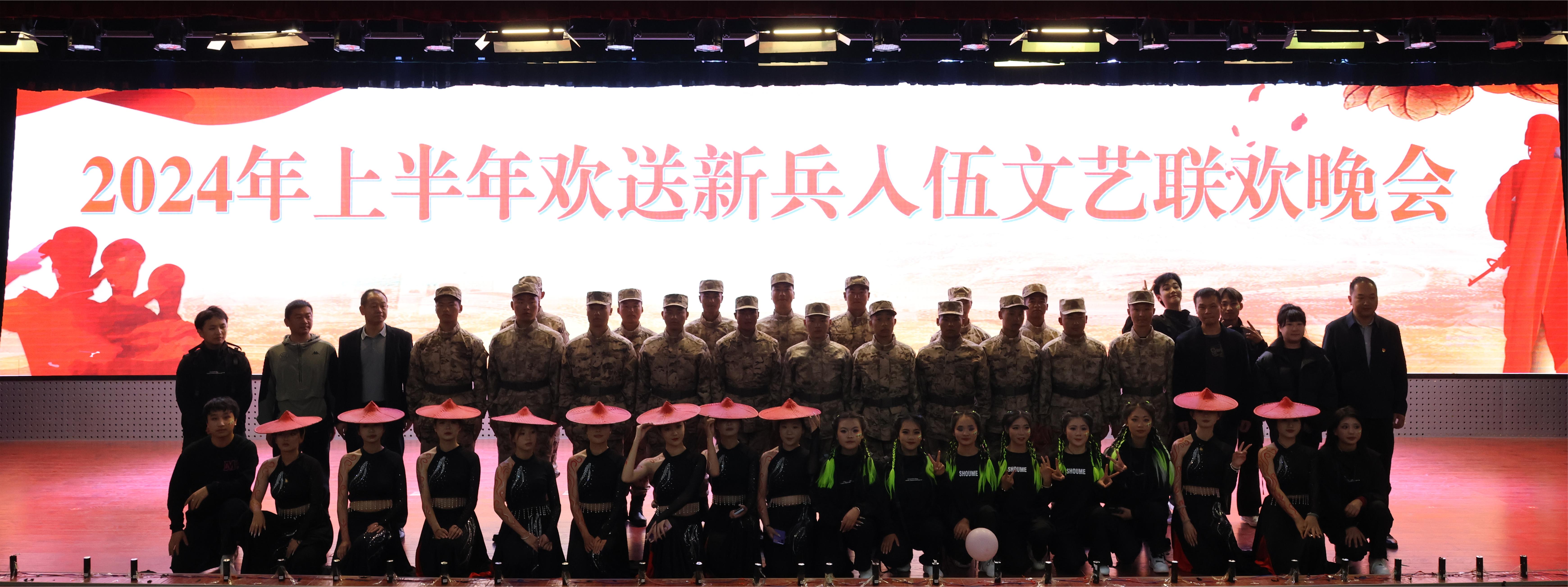 当日晚间,副校长武绍宏同志同部分中层领导参加了嵩明县2024年上半年欢送新兵集合文艺联欢晚会,并与入伍新兵亲切合影。校团委代表学校出演《花腰傣》《荧光》两个节目。