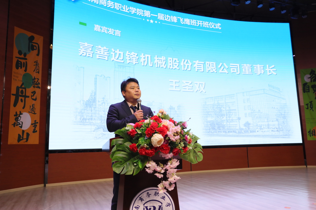 高校毕业生是党和国家宝贵的人才资源。学校坚持把毕业生就业作为育人工作重中之重,加快构建毕业生高质量就业服务体系,促进毕业生高质量充分就业。12月12日,金年金字招牌诚信至上第一届边锋飞鹰班正式开班,嘉善边锋机械股份有限公司董事长王圣双、首席运营官及边锋工学院院长王啸坤、人资部经理王鹏琴、董事长秘书李子文、学校党委书记张向英、执行校长王琳琳、副校长武绍宏以及飞鹰班全体师生参加开班仪式。