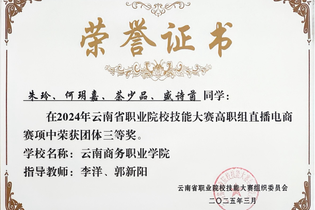 学院积极营造以赛促教、以赛促学人才培养环境,为师生参赛创造良好条件,近年来,学生在“直播电商”、“电子商务”等技能大赛获得省奖7项、获得互联网+“创新、创意及创业”省级一等奖等荣誉。学院教师曾参与省级重点课题3项、获省级奖项13余项,校级奖项30余项,多次带领指导学生参加“互联网+”等创新创业类赛事,并取得银奖1项、铜奖6余项等。一项项荣誉的取得,让师生发展路径不断拓宽。