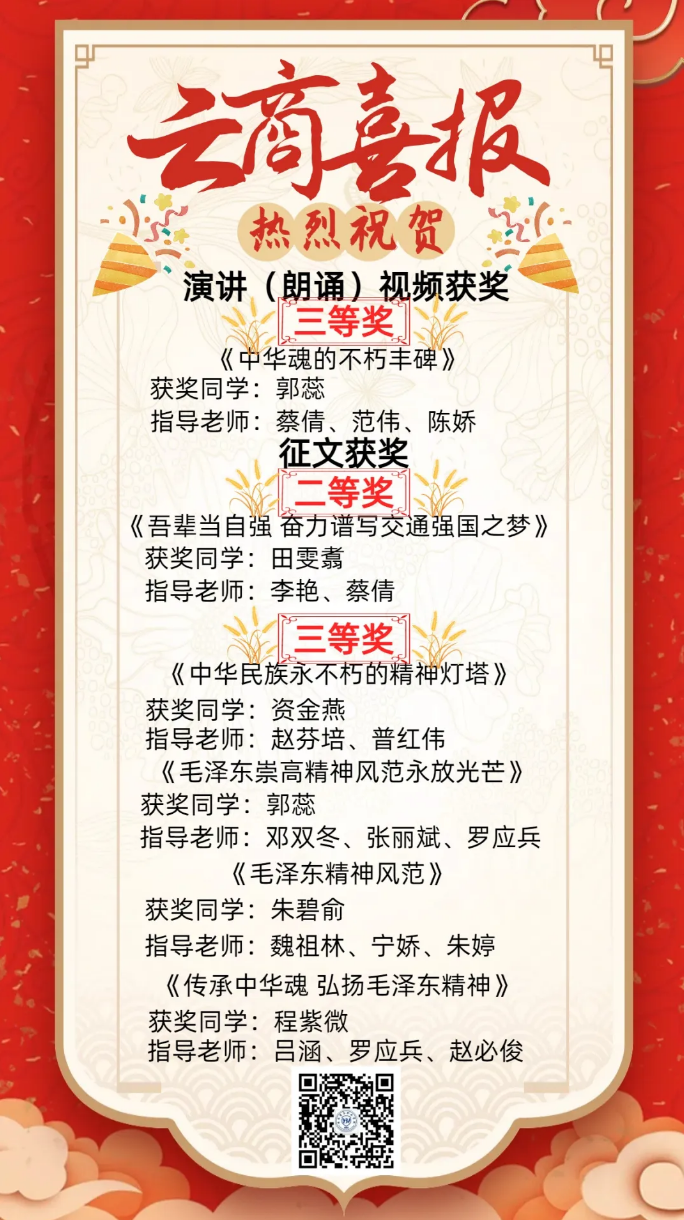 二等奖一项,三等奖五项!云商师生在省教厅关工委2024年“中华魂”(毛泽东崇高精神风范)主题教育读书活动中喜获佳绩!