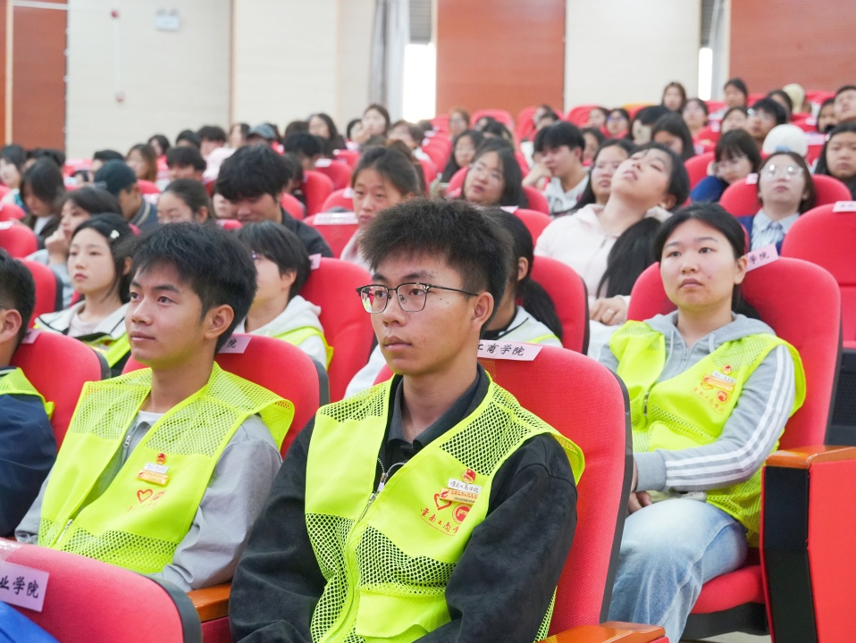 随后,副县长、县公安局局长那铮围绕“小安”志愿者的职责使命与活动内容,结合自身从警经验与真实案例,开展专题讲座。讲座深入剖析校园及周边安全风险隐患与相关法律问题,既传授实用的安全防范技能与法律知识,又从价值认同、行动路径等层面引导志愿者明晰责任、坚定初心,鼓励大家将志愿服务热情转化为长效行动,在守护校园平安的过程中实现自我成长与价值提升。讲座内容详实、案例生动,引发现场志愿者共鸣。