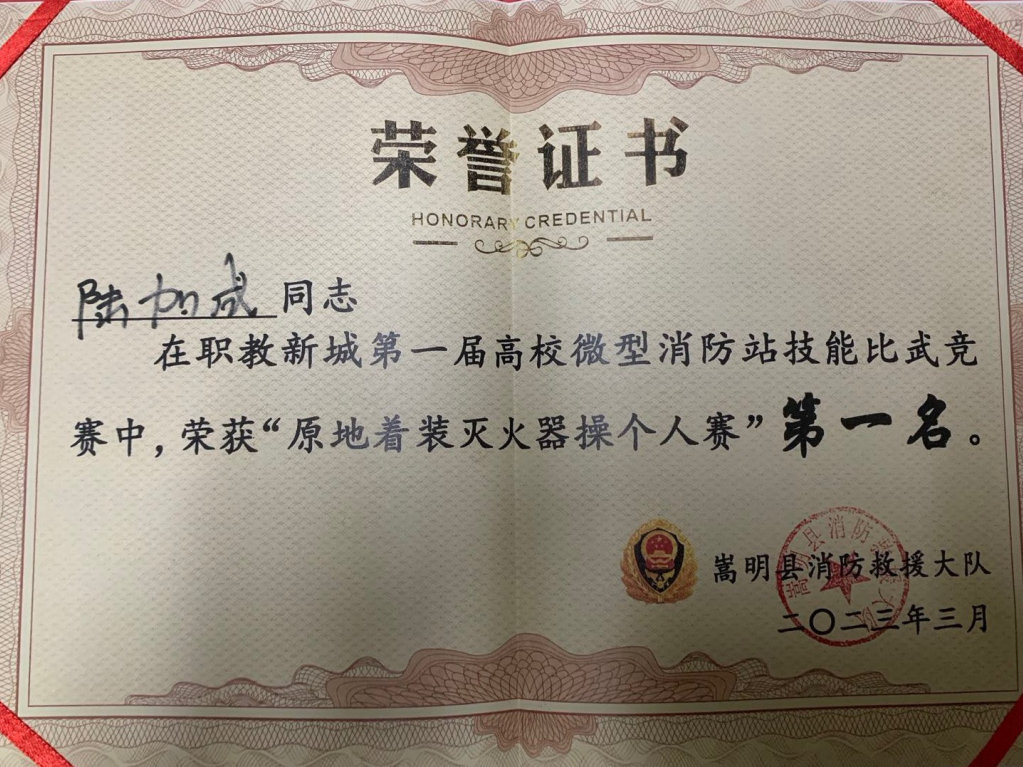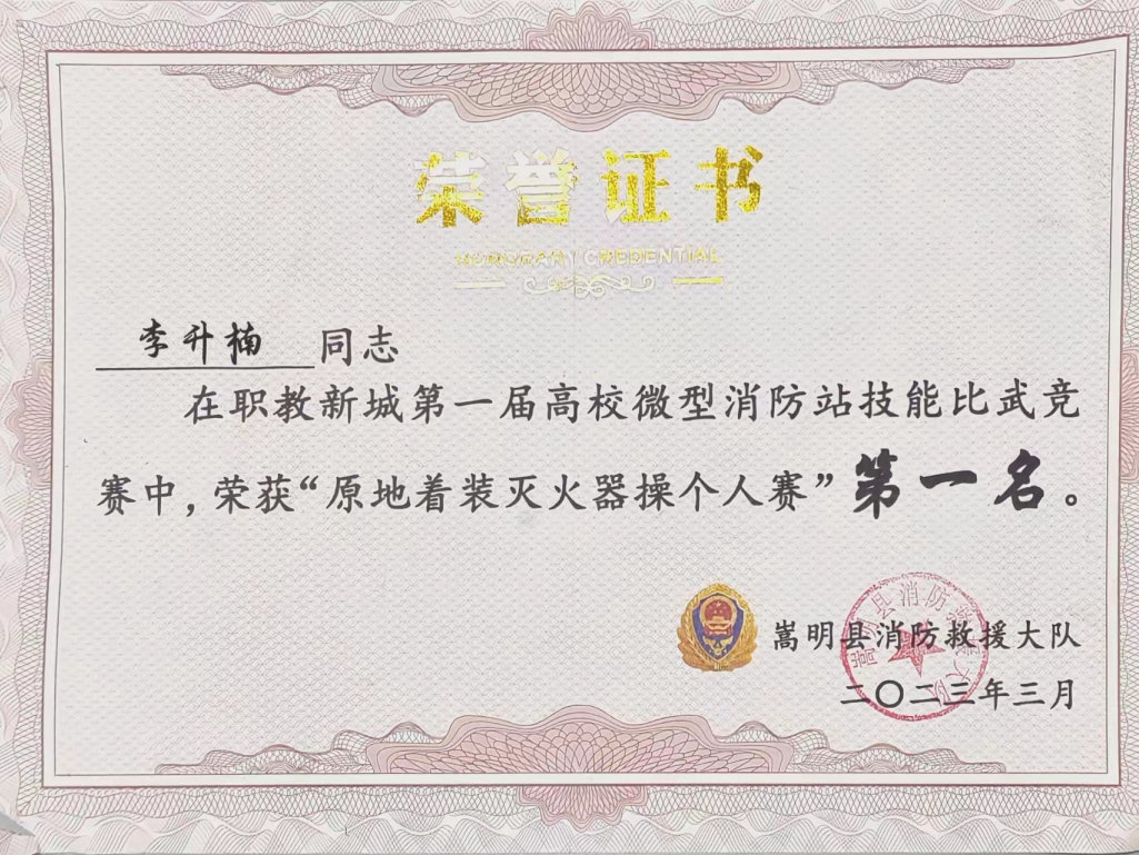 7.嵩明职教新城2023第一届消防比武原地着装荣获第一名3项等。